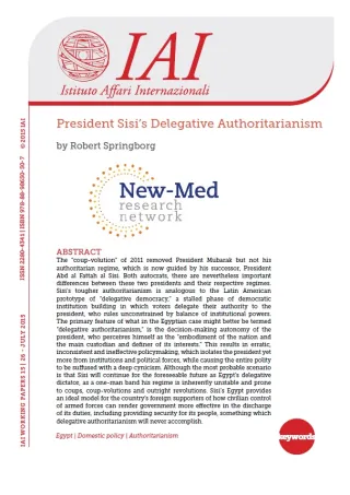 Documento prodotto nell'ambito della rete di ricerca New-Med, luglio 2015. Vedi anche Caudillismo along the Nile, in The International Spectator, Vol. 51, No. 1 (March 2016), p. 74-85.