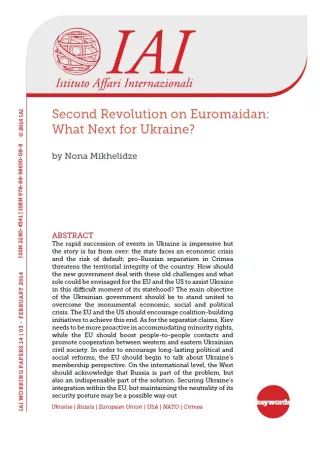 Il rapido succedersi degli eventi in Ucraina è impressionante, ma la storia non è affatto finita: lo stato deve fare fronte alla crisi economica e al rischio di default, nonché al separatismo filo-russo in Crimea che minaccia l'integrità territoriale del paese. Come affronterà il nuovo governo queste vecchie sfide e che ruolo possono svolgere l'Unione europea e gli Stati Uniti per assistere l'Ucraina in questo momento difficile per la sua statualità? Il principale obiettivo del governo ucraino dovrebbe essere quello di mantenersi unito per superare l'enorme crisi economica, sociale e politica. Ue e Usa dovrebbero incoraggiare le iniziative volte a creare coalizioni di governo. Riguardo alle rivendicazioni separatiste, Kiev dovrebbe essere più proattiva verso i diritti delle minoranze, mentre l'Ue dovrebbe promuovere i contatti diretti tra persone e la cooperazione tra la società civile occidentale e quella dell'Ucraina orientale. Per incoraggiare riforme politiche e sociali durature, l'Ue dovrebbe cominciare a discutere della prospettiva di adesione dell'Ucraina. A livello internazionale, l'Occidente deve riconoscere che la Russia è parte del problema, ma che è anche una parte indispensabile della soluzione. Assicurare l'integrazione dell'Ucraina nell'Ue garantendo al tempo stesso la sua neutralità può rappresentare una possibile via d'uscita.