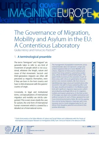 Documento prodotto nell'ambito del progetto "Towards a More United and Effective Europe". Presentato alla conferenza IAI-CIDOB su "Migration and Mobility in Post-Crisis Europe", Barcellona, 6 maggio 2014.