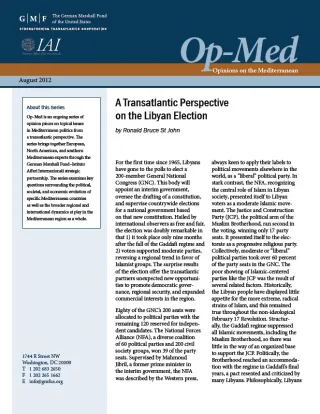The surprise results of Libya's recent election offer the transatlantic partners unexpected new opportunities to promote democratic governance, regional security, and expanded commercial interests in the region. Collectively, moderate or "liberal" political parties took over 60 percent of the party seats in the General National Congress (GNC). The election results for the 120 independent seats were not as clear-cut as those for the 80 party seats. Genuinely independent candidates or individual candidates with ties to parties other than the National Forces Alliance won a majority of the GNC seats reserved for independents. If the transatlantic partners can divest themselves of old paradigms and embrace change, they can promote democracy and human rights within the political system likely to evolve in Libya.