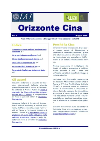 Roma, Istituto Affari Internazionali ; Torino, Torino World Affairs Institute (T.wai), 2010, 9 p.