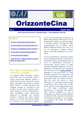 Roma, Istituto Affari Internazionali ; Torino, Torino World Affairs Institute (T.wai), 2010, 11 p.