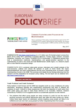This is a summary of final policy recommendation report of the FP7 POWER2YOUTH project, delivering the main findings, the causes of ‘exclusion’ of young people in SEM countries and the key policy messages.