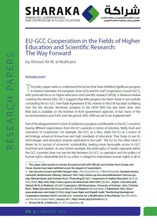 EU-GCC Cooperation in the Fields of Higher Education and Scientific Research: The Way Forward