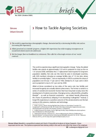 The world is experiencing a significant demographic change. Today, the global fertility rate stands at approximately 2.23 and is projected to drop as low as 1.61 around 2050, well below the 2.1 replacement level required for long-term population stability. Not only can this trend be seen in developed countries, with G20 members showing an average fertility rate of 1.5, but also where fertility is currently higher.[1] Just as importantly, in OECD countries the share of population over 65 was 7.7 per cent in 1950, climbed to 21.3 per cent in 2023 and is projected to rise to 25.1 per cent by 2050.