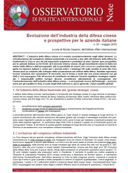 Evoluzione dell'industria della difesa cinese e prospettive per le aziende italiane
