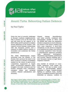 in Paul Taylor, Molto agitato. L’Italia e la sicurezza mediterranea, Brussels, Friends of Europe, June 2019, p. 86-107