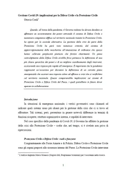 Gestione Covid-19: implicazioni per la Difesa Civile e la Protezione Civile