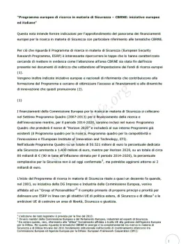 Programma europeo di ricerca in materia di Sicurezza – CBRNE: iniziative europee ed italiane